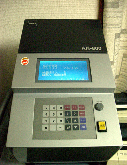 精米年月日の刻印の有無、シール不良・破袋の有無等を出荷前にチェックします。また、玄米・白米の品質・成分を右記計測器でチェックします。