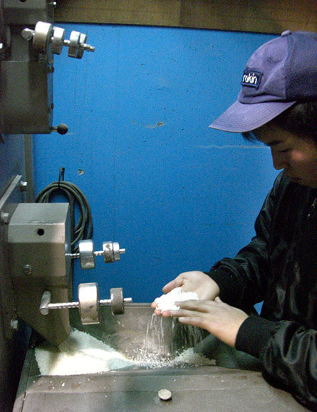 餅加工の場合、通常より精白率を上げて精米します。穀類の表面には多くの雑菌があり、ここで菌数を落とす事も重要です。
