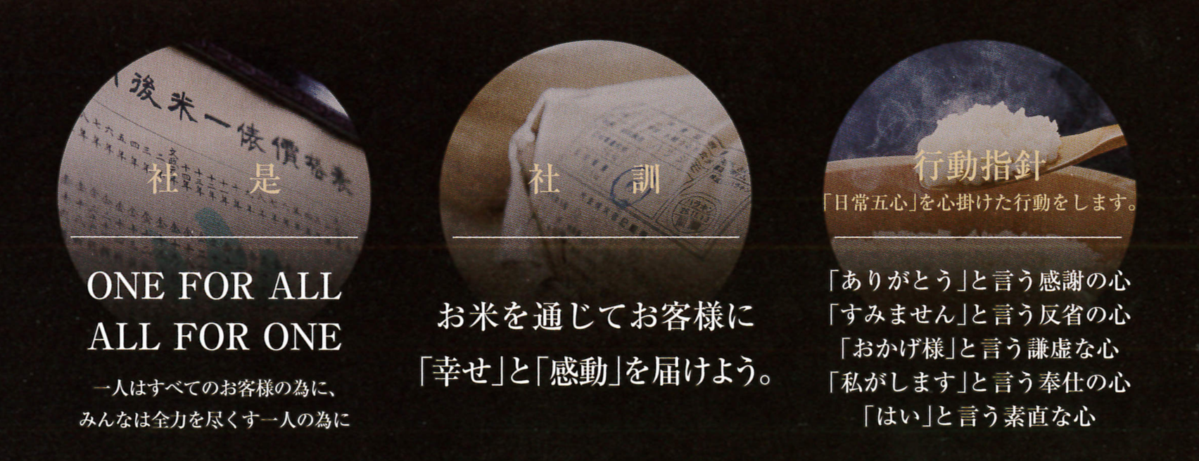ハラキングループは昭和2年の創業から日本人が大切にしている、お米を販売させていただける事を心から「幸せ」に思っています。また美味しいお米を作るために日々努力し続けてくれる農家の皆様の姿に「感動」し感謝しています。その想いを胸に、お米の産地である岐阜県・愛知県・富山県・新潟県に拠点を置き、それぞれの産地の特色を活かした種子の販売、集荷、検査、保管、精米、加工、卸、小売販売といったお米に関わる多くのことをビジネスにさせていただいています。日本人の魂であるお米をより多角的に捉え、質の良いサービス向上のために社員一同ちからをあわせて努力し続けます。お米を通じてお客様に「幸せ」と「感動」をお届けするために。