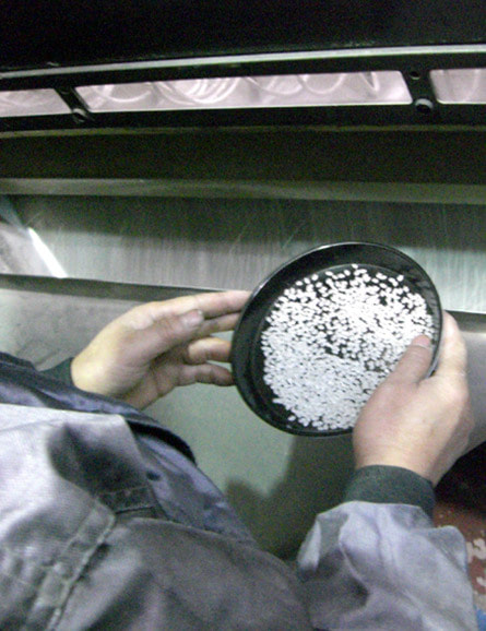 白米に混ざっている糠や砕粒を、目の細かい網を振動させ除去します。