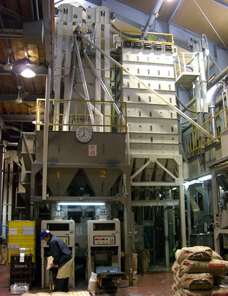 異物を除去した玄米を精米します。糠は工場外の糠取場へ空気搬送されます。