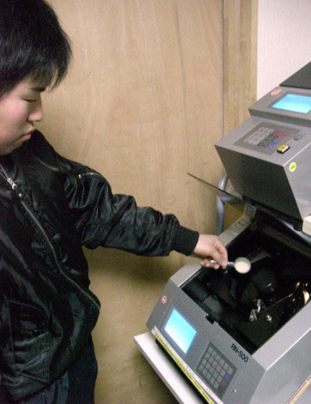 ハラキンでは、入荷される原料米はもちろんのこと出荷製品に至るまで、各種測定器を利用した厳しい品質管理を実践しています。